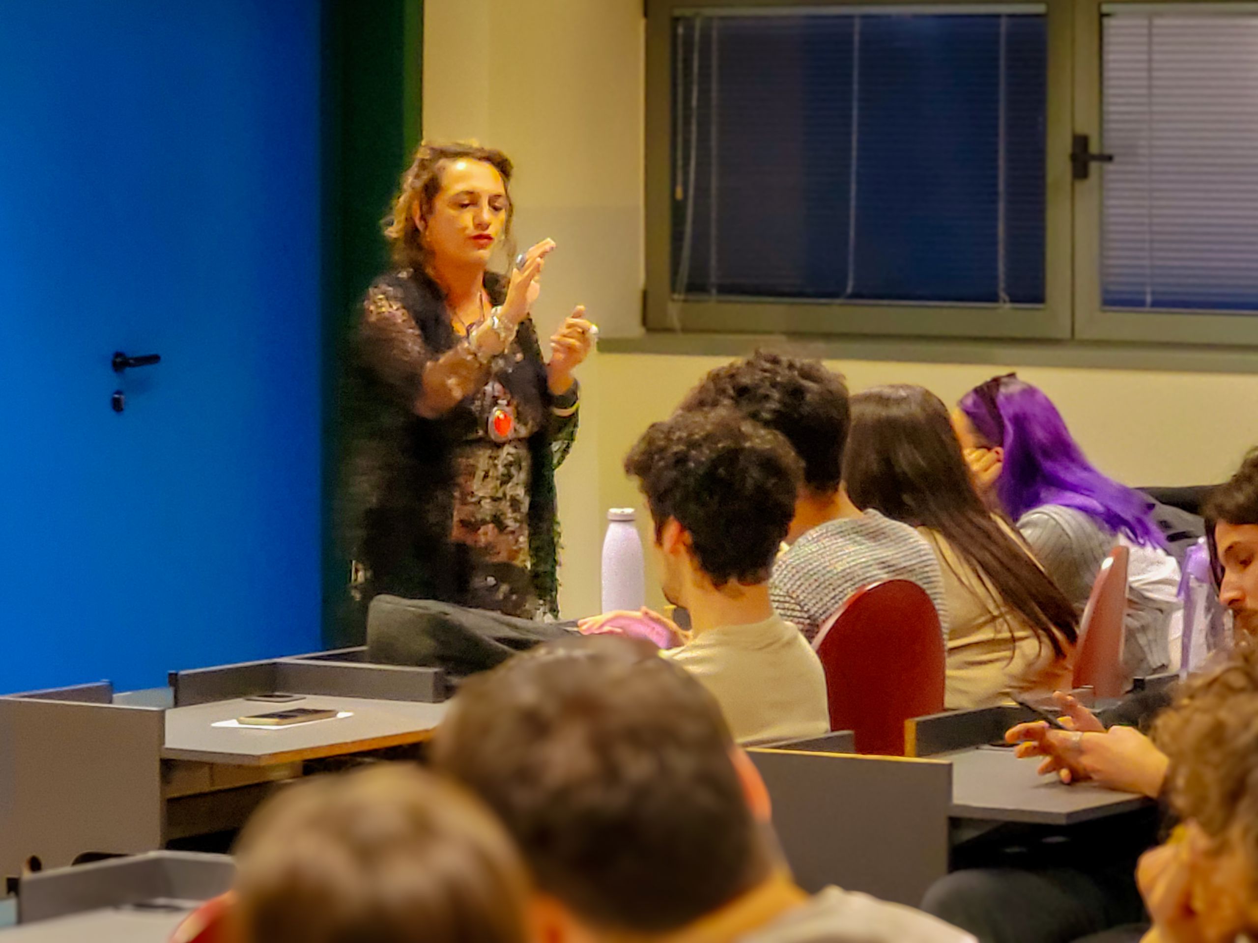Durante la lezione, i nostri allievi hanno dovuto portare in scena dei personaggi. Ognuno con il suo monologo, entrava in classe interpretando direttamente il personaggio.